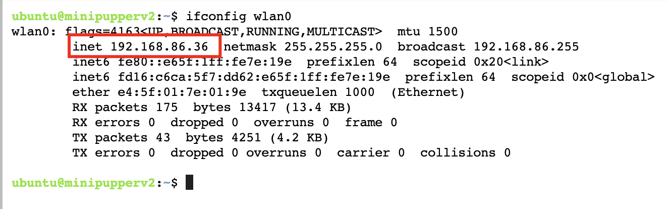 mangdang as your login passwordIf not ifconfig, try sudo apt install net-tools -y